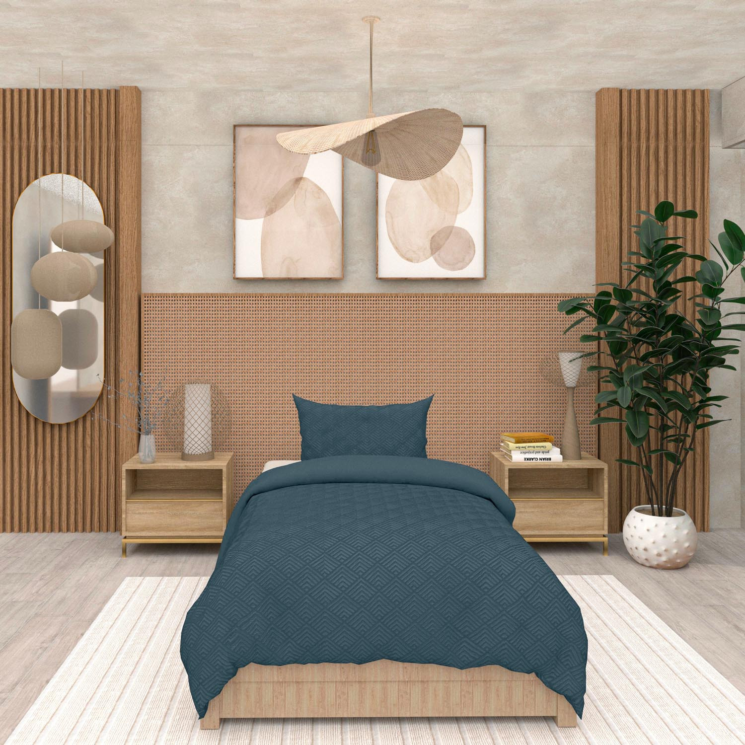 Parure housse de couette 3D microfibre 140x200 cm GAIA bleu canard, par Soleil d'Ocre