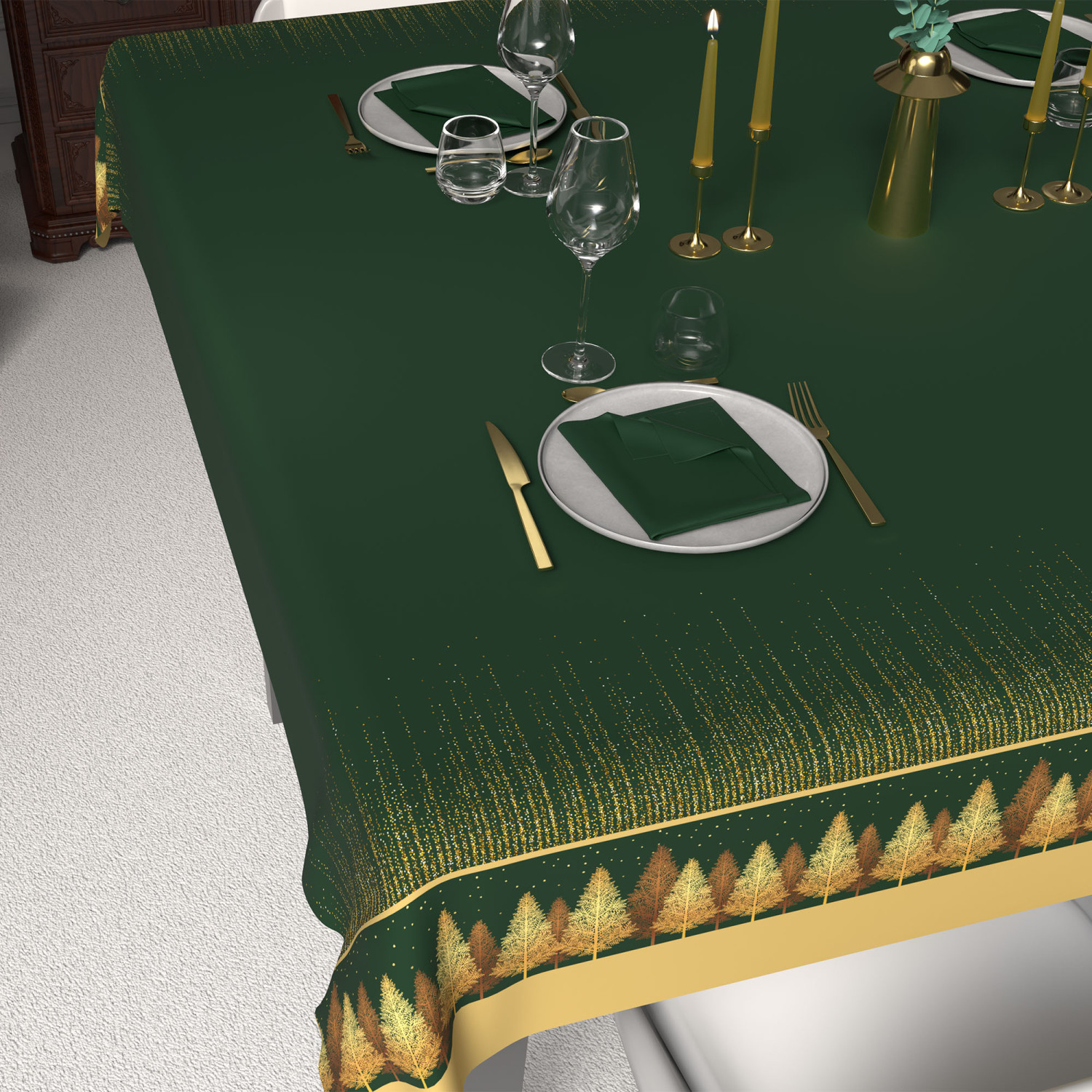 Nappe festive imprimée anti-tâches carrée 180x180 cm FORET, par Soleil d'Ocre