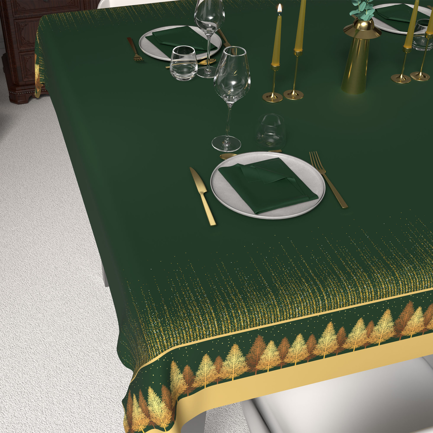 Nappe festive imprimée anti-tâches FORET, par Soleil d'Ocre