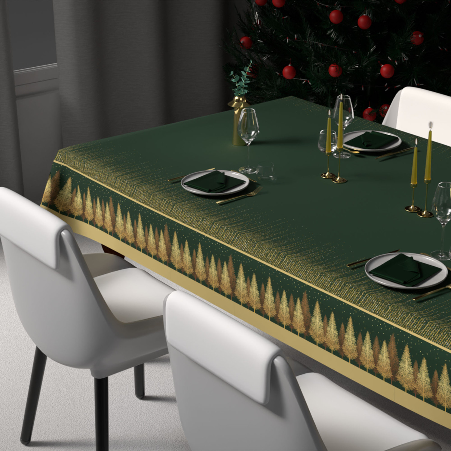 Nappe festive imprimée anti-tâches rectangle, traitement waterproof.