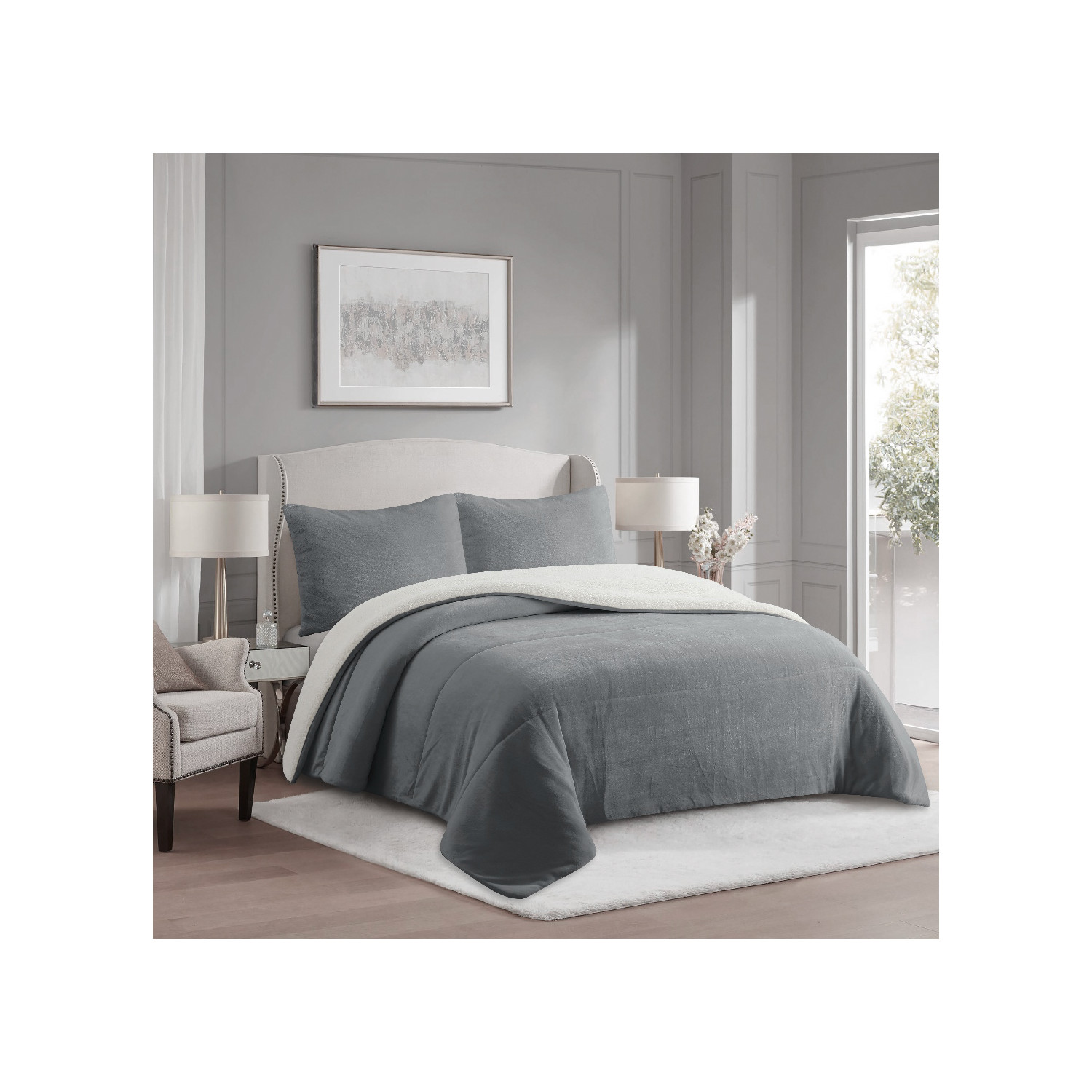 Couette polaire microfibre doublé sherpa 180x260 cm BICOLORE gris clair, par Soleil d'ocre