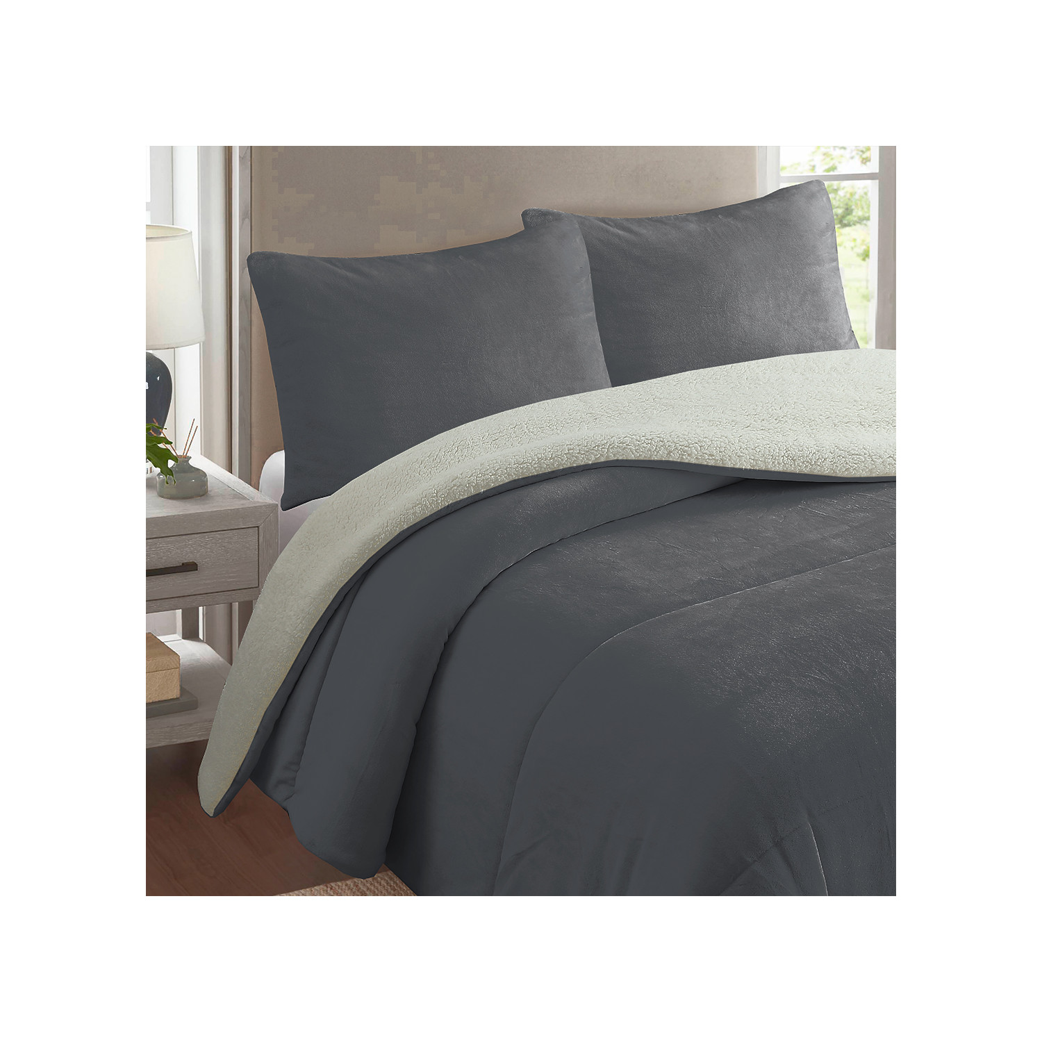 Couette polaire microfibre doublé sherpa 180x260 cm BICOLORE gris, par Soleil d'ocre