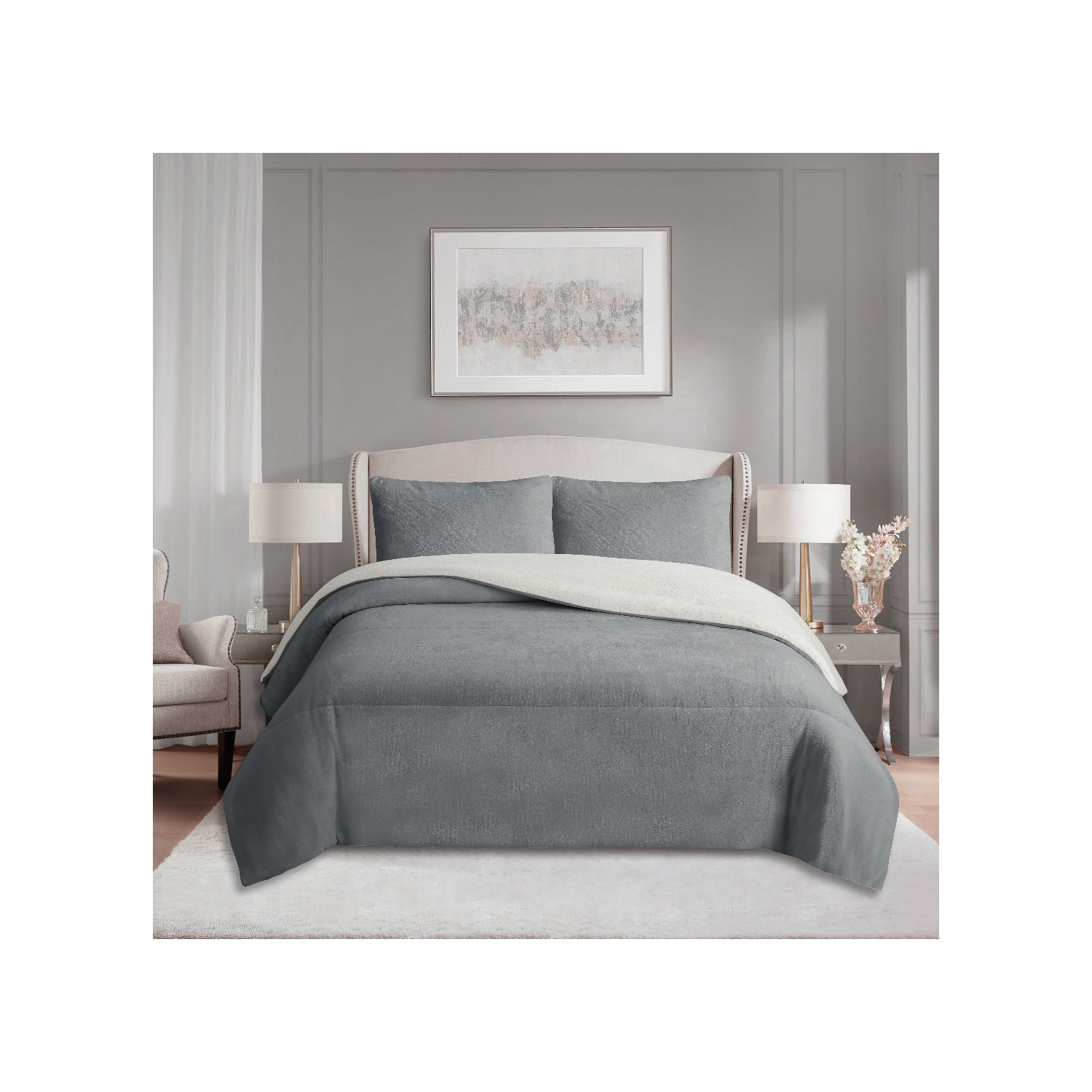Couette polaire microfibre doublé sherpa 240x260 cm BICOLORE gris clair, par Soleil d'ocre