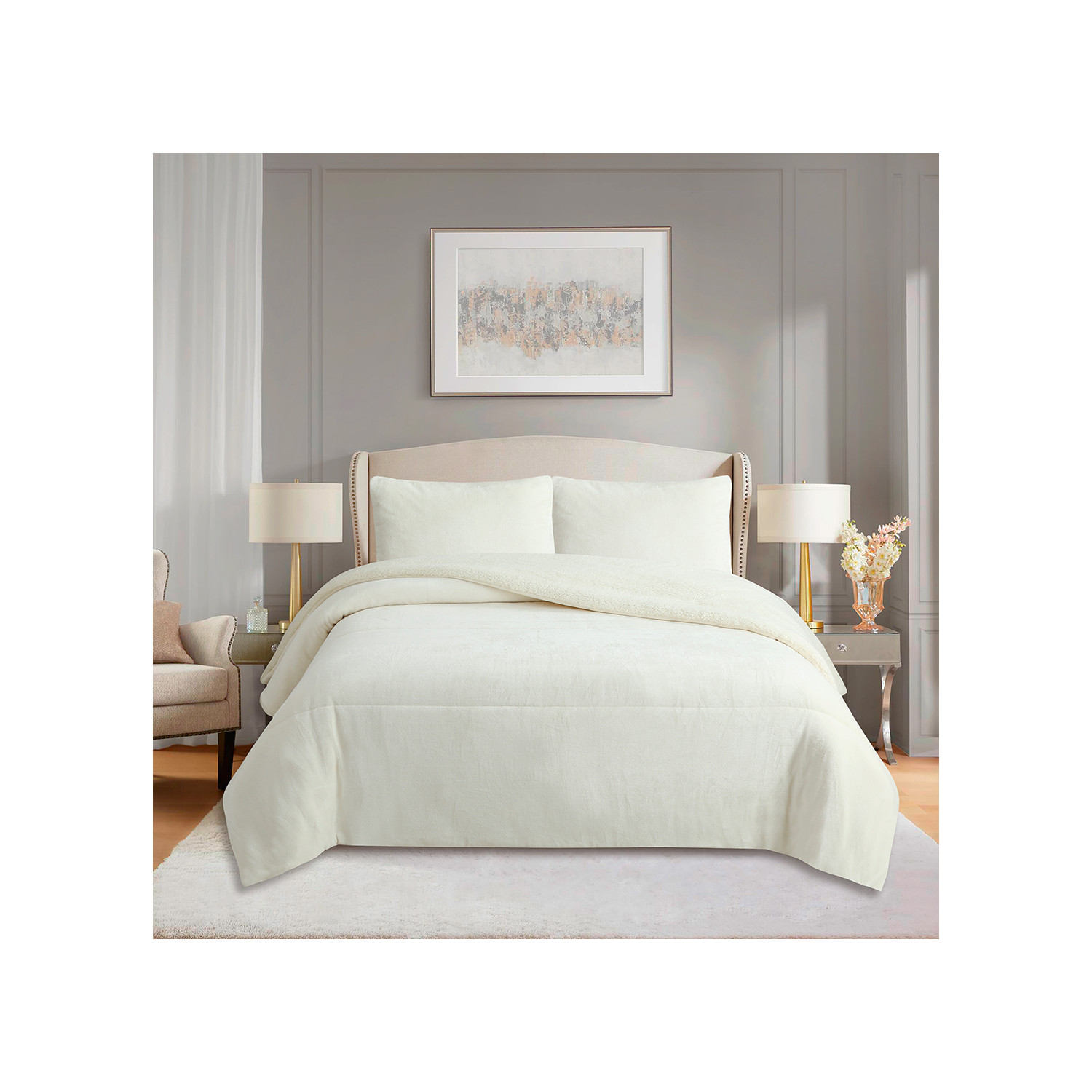 Couette polaire microfibre doublé sherpa 260x260 cm BICOLORE beige, par Soleil d'ocre