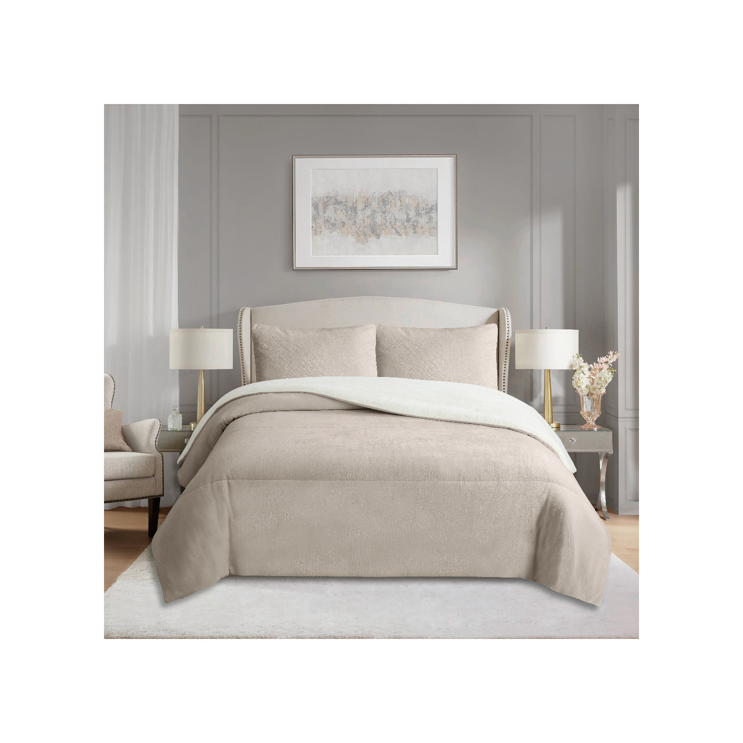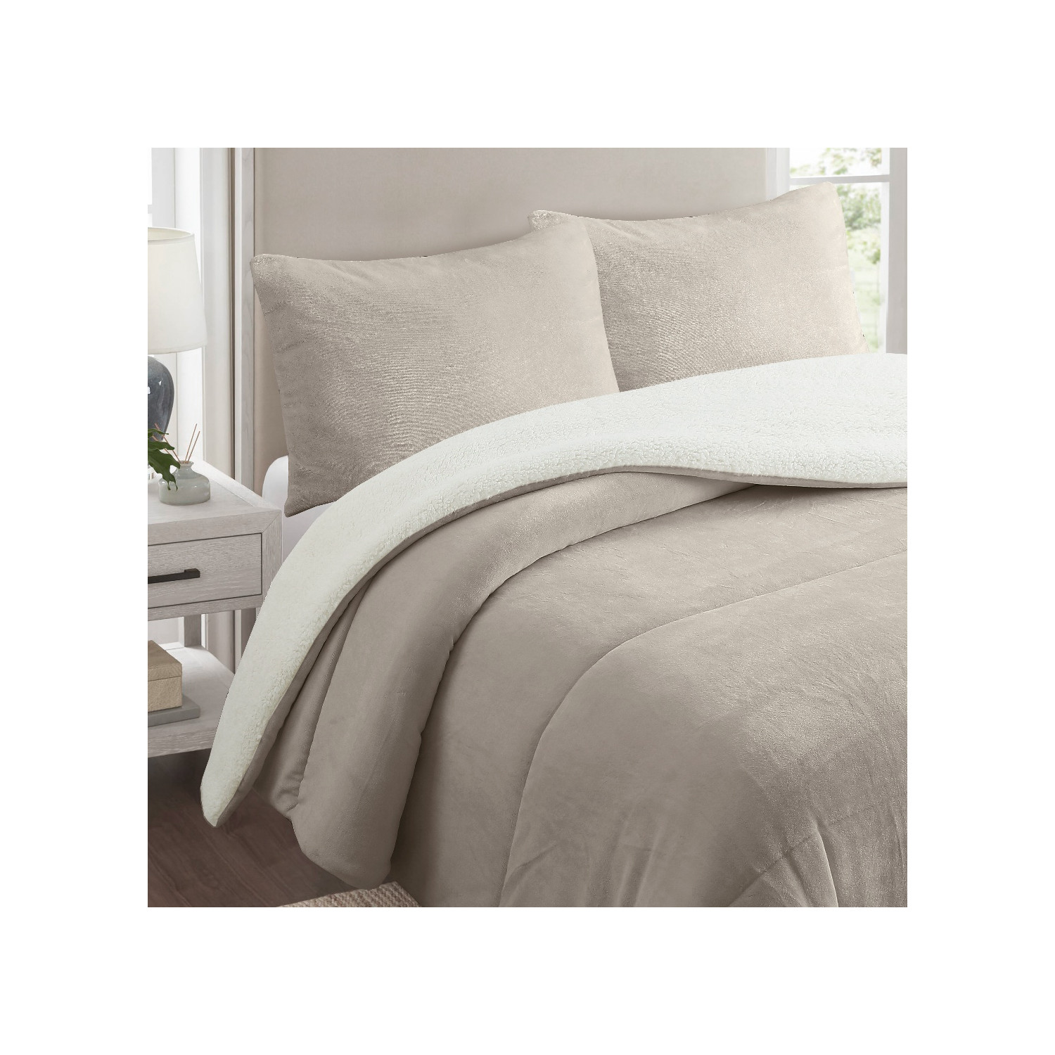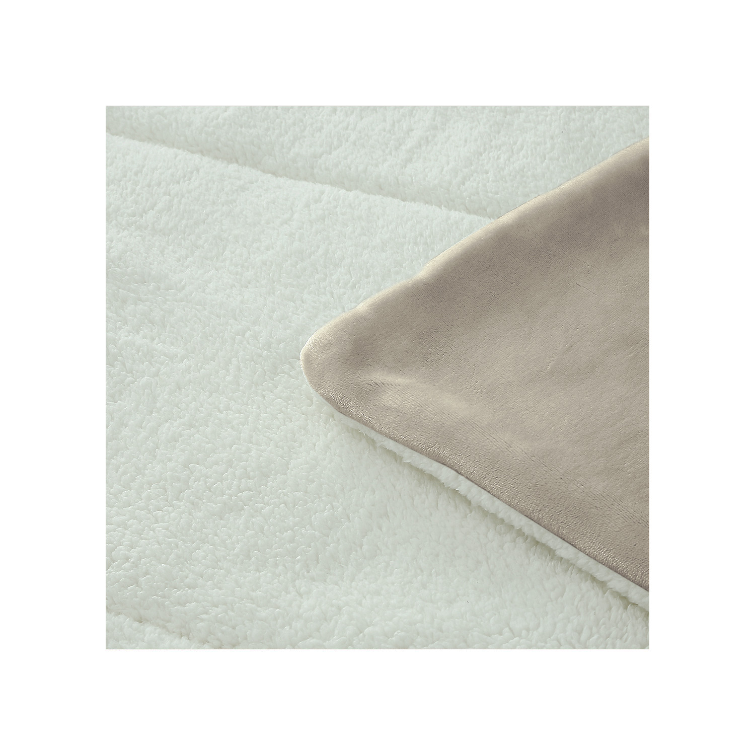 Couette polaire microfibre doublé sherpa 260x260 cm BICOLORE taupe, par Soleil d'ocre