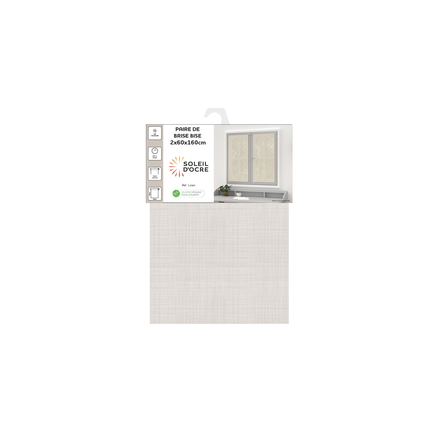Paire de brise bise lin 60x160 cm LINEN naturel, par Soleil d'Ocre