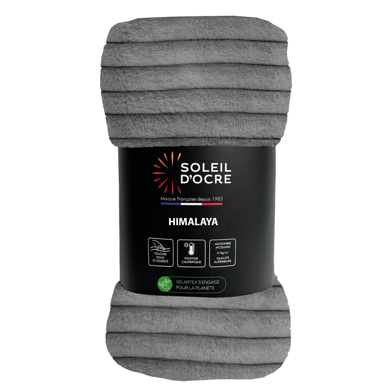 Couvre lit flanelle et velours 180x220 cm HIMALAYA gris, par Soleil d'ocre