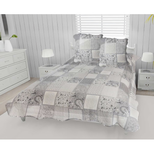 Boutis imprimé matelassé 220x240 cm et ses 2 taies d'oreiller 65x65 cm