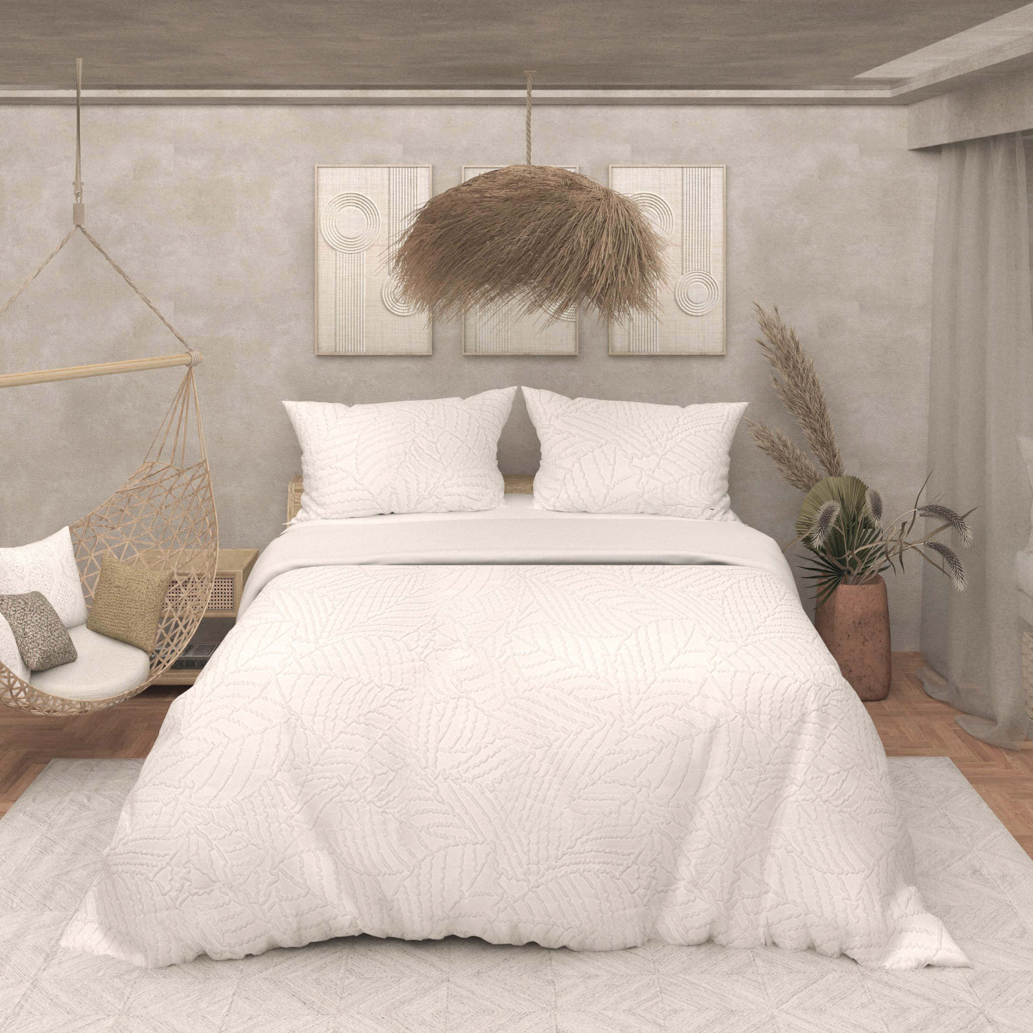Parure housse de couette 3D microfibre 240x220 cm MAYA blanc, par Soleil d'Ocre
