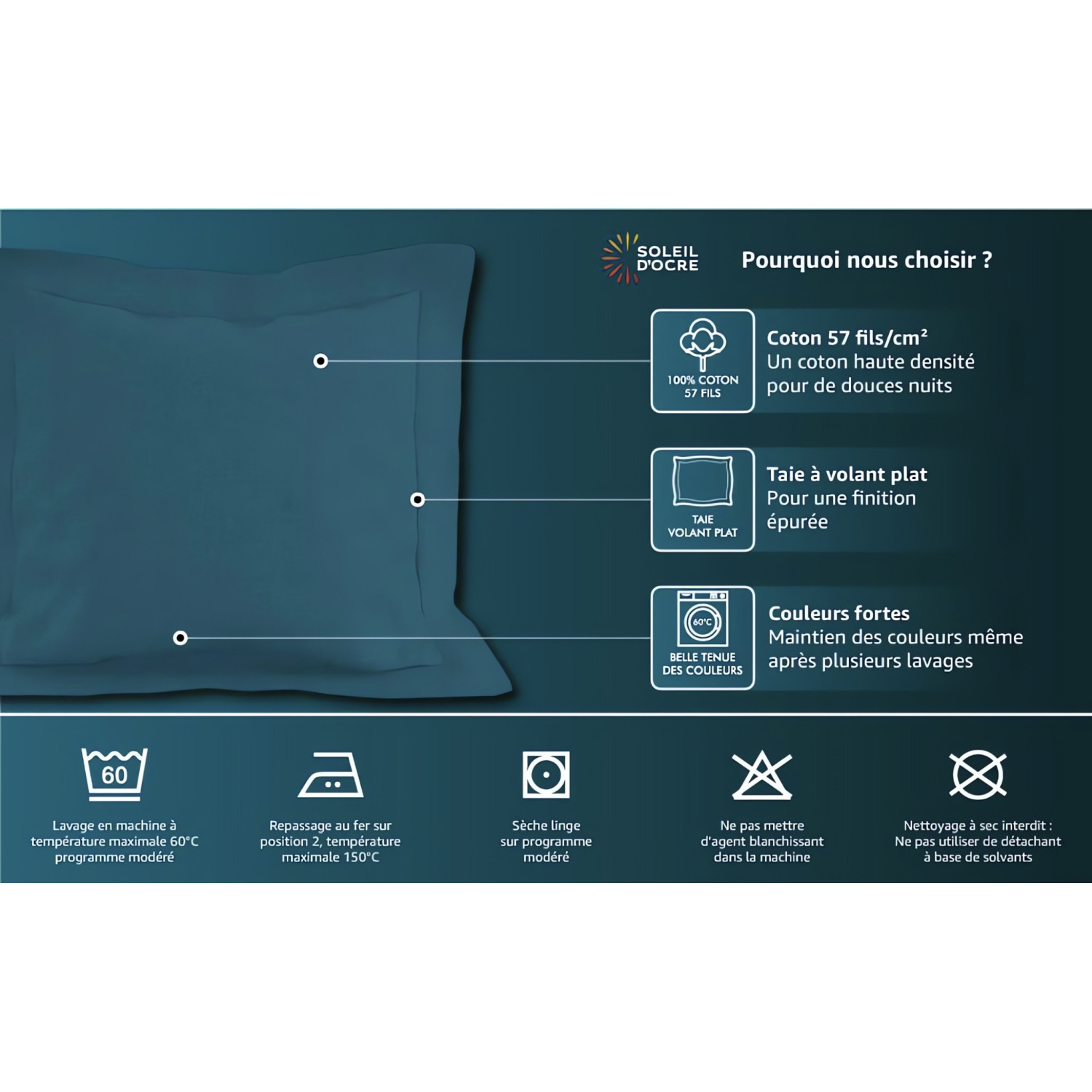 Taie d'oreiller en coton 57 fils UNI, par Soleil d'ocre