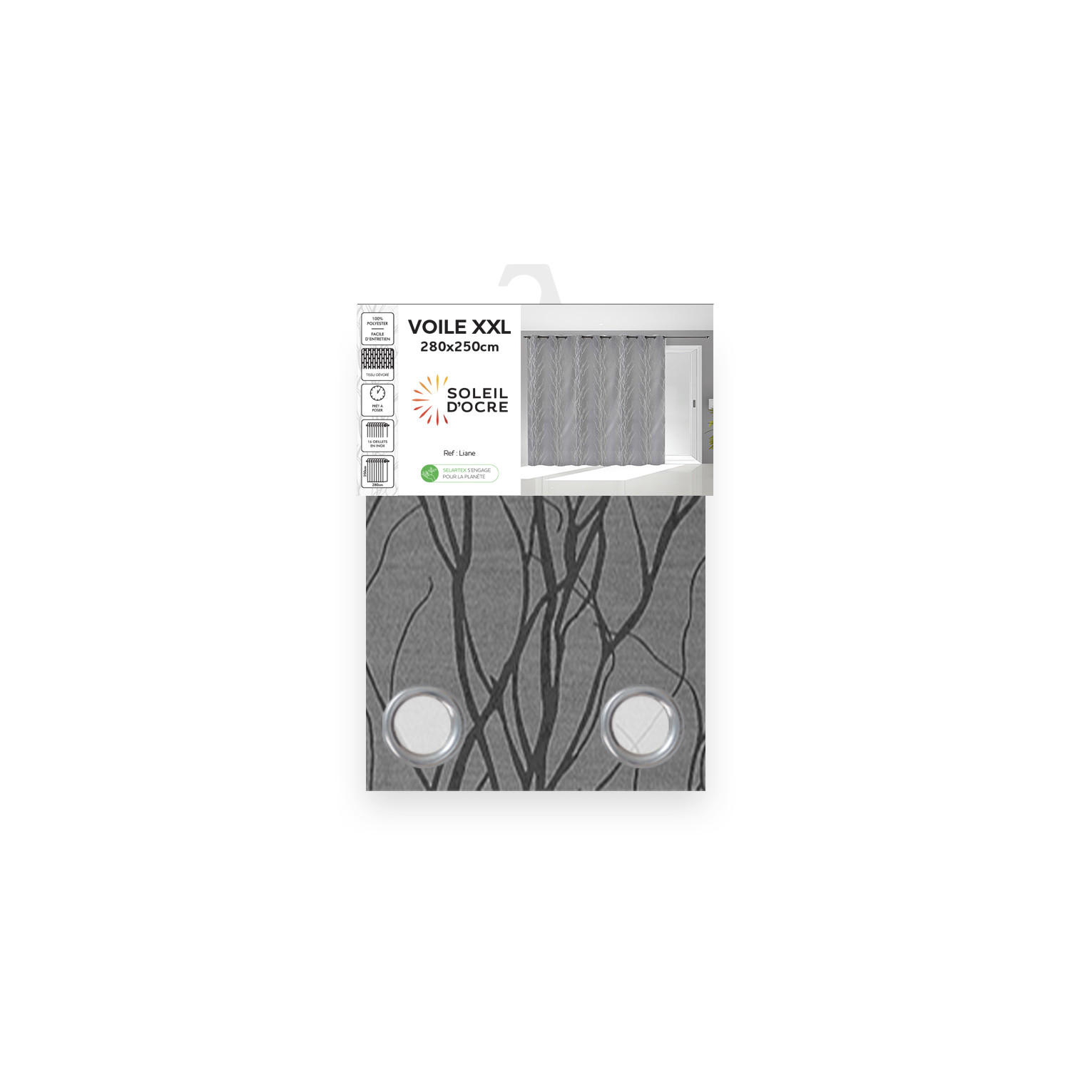 Voile à oeillets baie vitrée 280x250 cm LIANE gris, par Soleil d'ocre