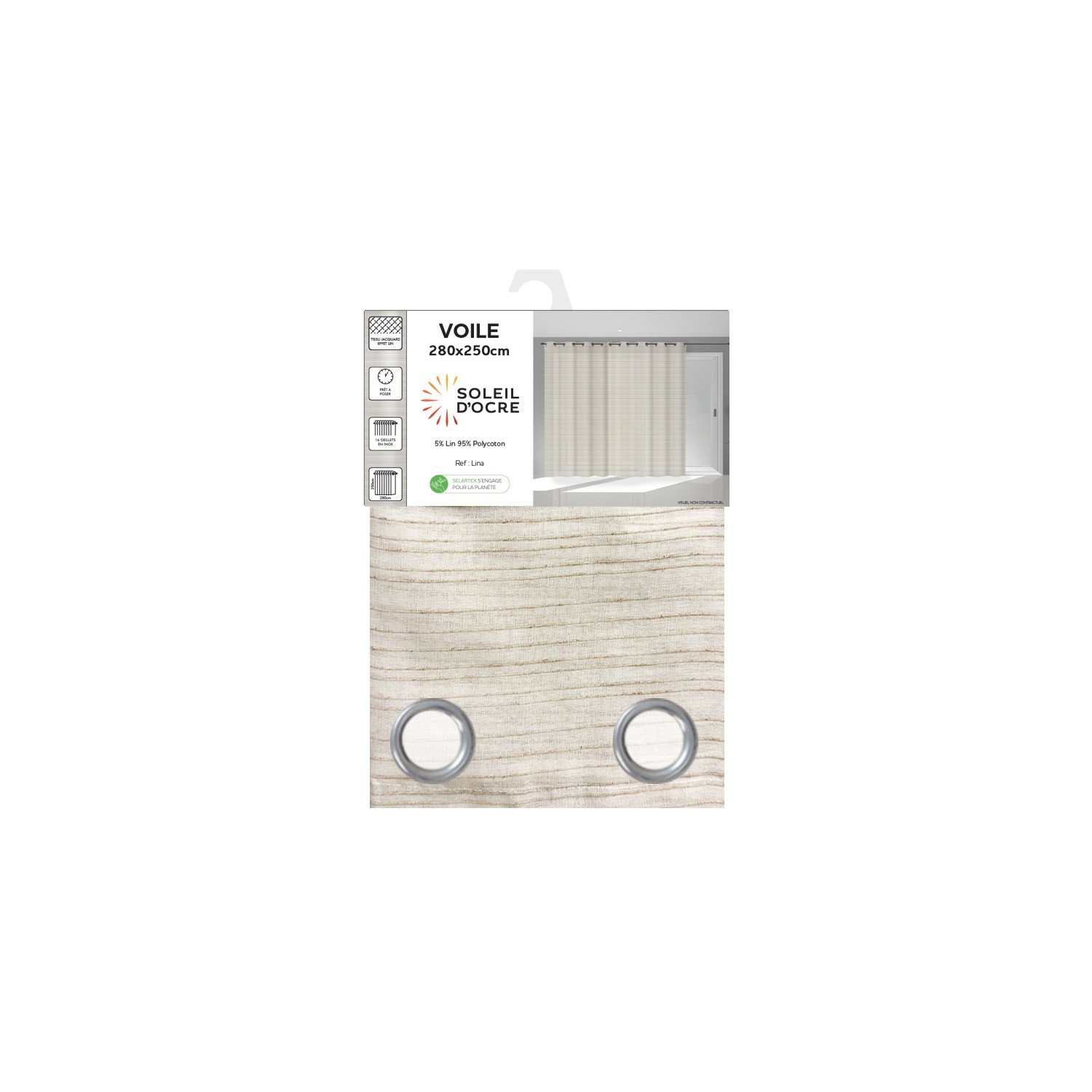 Voile à oeillets baie vitrée 280X250 cm LINA, par Soleil d'Ocre